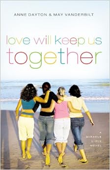 Love Will Keep Us Together by Anne Dayton & May Vanderbilt is the fourth and final book in the Miracle Girls series. Riley McGee, Supergirl, finally gets to carry her own title. Readers have seen her through the eyes of her friends, now she can tell her own story. At the beginning of her senior year, the pressure is finally starting to weigh her down. Her parents have dreams of her attending Harvard. Her friends want to go to USC with them, but Riley has no idea what she wants to do with her life. Ex-boyfriend Tom reappears wanting to rekindle their romance, but fellow youth group member Ben strikes something in Riley that she didn't even know existed. Senior year is a tough time for any teen, but it's incredibly difficult for Riley who has always achieved perfection. Straight As, cheerleader, and she takes good care of her brother Mike who has Asperger's. She's never really had a chance to need anyone or ask for help, so when Riley faces the confusion and fears of moving to adulthood, she has no one to turn to. Riley was hard to relate to in the previous books; she always came across as Miss Perfect, so seeing her heartache and pain makes her very sympathetic for teens and their moms. She's also struggling with faith and church in a way that many will relate to as well. I am truly sad to see the end of the Miracle Girls, but the authors end it just right.