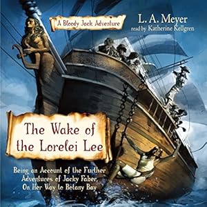 One of the happiest things for an avid reader like myself is to discover a new series to enjoy. It means that you have not only one good book to read, but several! It allows you to space out the books, interspersing others as necessary, and still be able to come back to the books you're enjoying so much, and yet have each story break fresh and new and unexpected.This is what I have been able to experience with the Bloody Jack series by L.A. Meyer. I am a huge fan of pirates, both fictional and historical (because ninjas suck); I find the lifestyle, the concepts, and the characters hugely enjoyable. My wife pointed out this series on the shelf of our local bookstore because of that attraction, and we decided to give it a try. Now, eight months later, I have the bittersweet experience of having caught up with the series, and so now I must wait for the next book to be published, rather than simply being able to go buy it when I feel a craving for the adventures of Jacky Faber.And that craving will come. These books are, without a doubt, the best things I have read this year, and are certainly now one of my favorite series of books, not least because they are not like anything else I usually read. There are certain parallels to Naomi Novik's Temeraire series, largely because the two authors have set their work in the same general time and place, but where those are fantasy, L.A. Meyer's books are historical fiction at its best. Not only do you get a rollicking good story, but you get to learn things about the past, and relive some of the golden days of yore.This latest installment (But not the last, since it ends, as these books often do, in a cliffhanger) is just as good as all the rest; a remarkable achievement, since it is the eighth book in this outstanding series, which has not had a single drop in quality, either of the writing or the storytelling. This book was as hard to put down as every other one.The Wake of the Lorelei Lee does follow the general pattern of the other books, which is: our beloved hero, Mary "Jacky" Faber, former street urchin and wayward waif, Lieutenant in the Royal Navy, Belle of the Golden West, Fine Young Lady, head of Faber Shipping Worldwide, Mermaid, Performer, Adventuress, and Pirate, has her life looking up, being exactly where she wants to be: captain of her own ship, the Lorelei Lee, on her way to England to reunite with her long-suffering fiance, James Emerson Fletcher. And as happens in pretty much every book so far, things all fall apart in the worst way, at the worst moment, and Jacky is, once more, arrested by His Majesty's Government. I don't want to give too much away, so suffice to say that Jacky finds herself on the way to Australia, a captive in her own ship, the Lorelei Lee. I knew that much going in, so I hope I haven't spoiled anything for those who haven't yet had the pleasure of reading the book.I could never have predicted what comes in this book, either the immediate circumstances and how Jacky makes them work for her -- though I was not surprised by the trouble Jacky gets herself into, as that seems to be her greatest skill, other than getting herself out of that same trouble -- or the remarkable whirlwind of events that come in the last several chapters, after things take a sharp turn for the worse. But I loved every minute of it. Jaimy plays a larger role in this book, acting as narrator for his own chapters as he did in the fifth book, "Mississippi Jack," and he did very well, both as main character and as adventurer on the high seas.These books, each and every one of them, are now my strongest recommendations to those who haven't found them yet. They are treasures, they are wonderful stories. They are, I think, a little too adult to be considered children's books, as there is quite a lot of death and horror in them, and a few risque elements, but I would definitely put them as young adult books, and certainly something that anyone would enjoy who likes a good adventure yarn. Especially young girls, as for all of her faults, Jacky is an incredible character, strong and endearing and wonderful, and, in her context, I think an excellent role model.But even if she's not that, she's a heck of a lot of fun to read about.